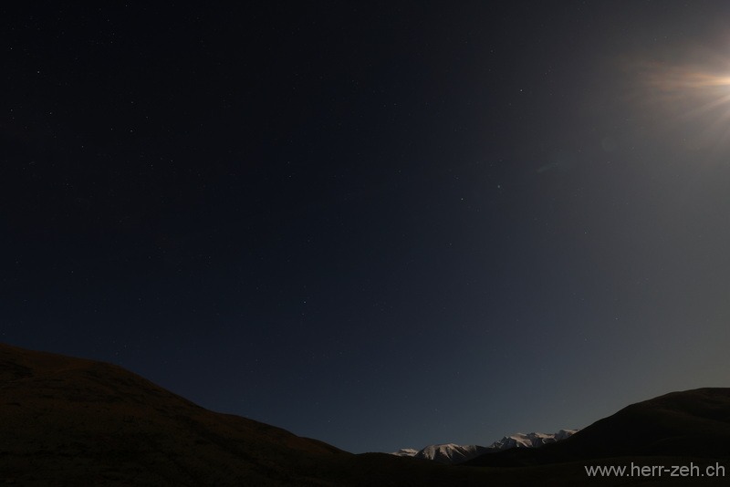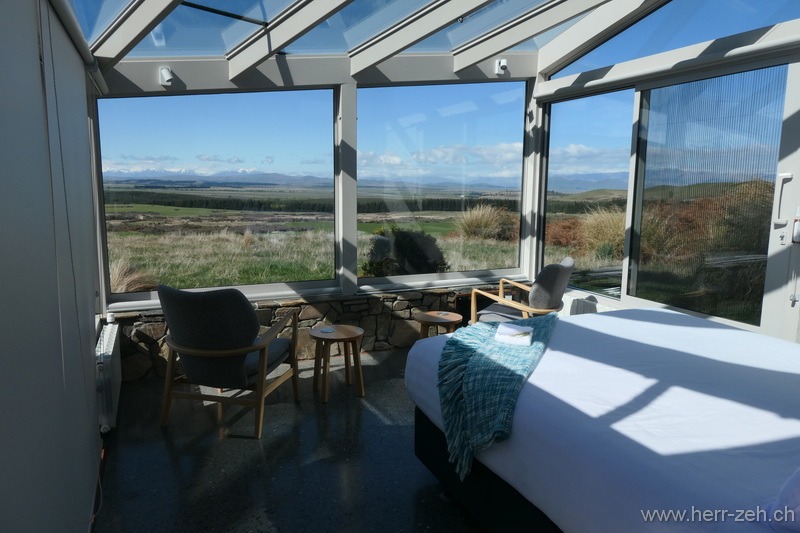 Hier hatten wir sicher eine der speziellsten und schönsten Unterkünfte der Reise. Drei Cottages verteilt auf einem riesigen Gelände ohne Sicht von einem zum anderen. Glasdach über dem Bett und damit warmes Schlafen unter dem Sternenhimmel. Dazu noch der Supermond (Jägermond) im Oktober. Eine riesige Aussenbadewanne, die wir natürlich rege benutzt haben. Wir waren sehr froh, konnten wir drei Nächte bleiben.