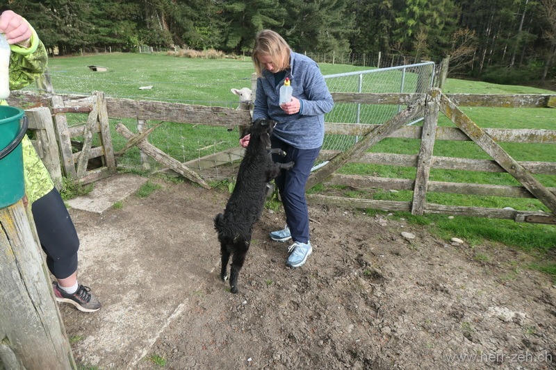 Unsere Unterkunft in der Nähe von Oamaru war ein ehemaliges Einklassen-Schulhaus. Die Grossmutter des Farmers (97) ist dort noch zur Schule gegangen. Vor einigen Jahren haben sie es in eine wirklich schöne Ferienunterkunft umgewandelt. Der Name ist Programm „Little Red School House“. Auf der Farm zieht die Bäuerin verwaiste Tiere auf, wer möchte darf bei der Fütterung gern helfen 🙂